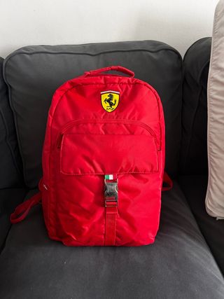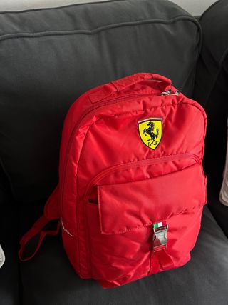Zaino originale Ferrari, perfetto per gli appassionati del marchio. - Colore rosso vivace. - Logo Ferrari sul davanti. - Fibbia con dettagli tricolore.