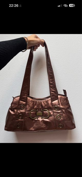 Borsa in stile anni 2000, perfetta per un look streetwear y2k. - Dettagli color oro. - Design unico con fibbia centrale.