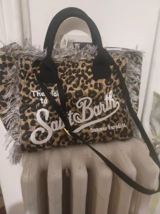 Borsa MC2 Saint Barth con stampa animalier e dettagli sfrangiati. - Fantasia leopardata. - Manici neri. - Tracolla regolabile. - Dettagli sfrangiati sui lati.