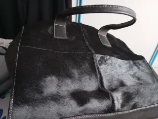 Borsa pelle e pelo nera a spalla con tracolla !