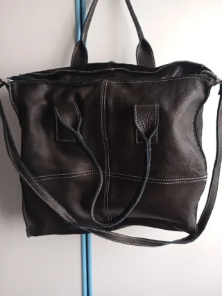 Borsa a mano/spalla in pelle nera Coccinelle. Design capiente e versatile. Dimensioni: circa 47 x 41 x 5 cm (super spaziosa!) Condizioni dell'articolo: Esterno: In ottime condizioni, la pelle è splendida e ben conservata. Interno: La fodera presenta alcuni segni di usura nella parte superiore vicino alla cerniera (ben visibili nelle ultime foto). Il difetto è solo estetico e non ne pregiudica assolutamente l'utilizzo.