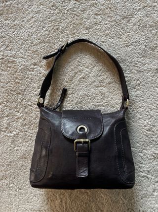 Borsa a spalla Coccinelle vintage in vera pelle marrone scuro dalla texture martellata. Un pezzo intramontabile per gli amanti del vintage! Presenta eleganti dettagli hardware in ottone brunito, con affascinanti segni del tempo che ne arricchiscono il carattere autentico. Trattandosi di un articolo vintage e usato, sono presenti lievi e naturali segni di usura, ma la borsa è perfettamente integra sia all'interno che all'esterno, come si può ben vedere dalle foto dettagliate. Nel complesso, le condizioni sono davvero ottime! Misure: 30 × 23 x 14 cm (circa).