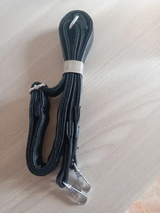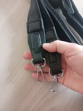 Tracolla lunga in ecopelle nera, perfetta per sostituire o personalizzare la tua borsa preferita. Dotata di moschettoni argentati per un facile aggancio. - Materiale: Ecopelle - Colore: Nero - Lunghezza: Regolabile - Chiusura: Moschettoni metallici - Lunghezza in apertura totale 137 cm - Altezza cm 3 Doppio strato, tessuto e ecopelle