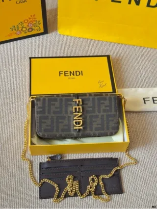 Elegante borsa Fendi Roma, un accessorio raffinato. - Logo Fendi dorato sul davanti. - Tracolla a catena dorata. - Include portacarte abbinato.