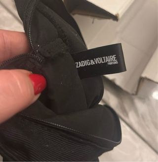 Elegante borsetta Zara in tessuto satinato nero. - Dettagli in catena argentata. - Tracolla regolabile in pelle e catena.