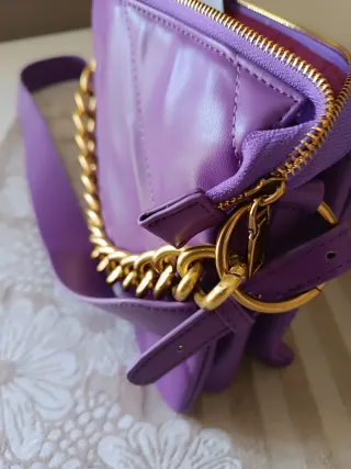 Borsa a spalla viola con dettagli dorati. - Design trapuntato. - Tracolla regolabile. - Chiusura con zip. - Dettaglio catena color oro.