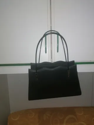 Borsa nera con un design raffinato. - Materiale in similpelle. - Manici sottili e curvi. - Chiusura superiore.