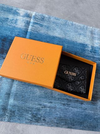Elegante porta carte Guess, perfetto per organizzare le tue carte. - Design monogramma Guess. - Chiusura a patta.