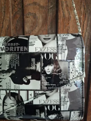 Elegante pochette con stampa di riviste vintage Vogue. Un accessorio unico che aggiunge un tocco di stile. - Design ispirato alle copertine di Vogue. - Motivo collage di immagini e testi di riviste.misura 31x19