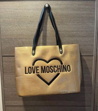 Borsa tote Love Moschino color oro. - Design con cuore e logo. - Manici neri.