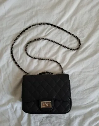 Elegante borsa da donna con un design distintivo. La tracolla regolabile. €40 - Catena metallica dorata per portarla a spalla.