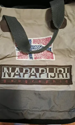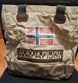 Borsa in tela con dettagli in pelle e tessuto. - Patch con bandiera norvegese. - Logo Napapijri Geographic sul davanti. - Manici in tessuto con inserti in pelle. - Fondo borsa in tessuto resistente. Borsa capiente. Dettagli nelle foto Usata ma tenuta benissimo. Senza difetti
