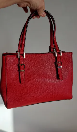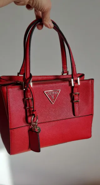 Elegante borsa Guess di colore rosso, perfetta per completare ogni outfit. Indossata un paio di volte, in ottime condizioni. Sull'ultime foto trovate un piccolo graffio ma è sotto la cerniera, è praticamente non visibile. - Dotata di tracolla - Misure L27 H20 - Logo Guess a triangolo in metallo. - Dettagli con fibbie. - Charm pendente con logo.