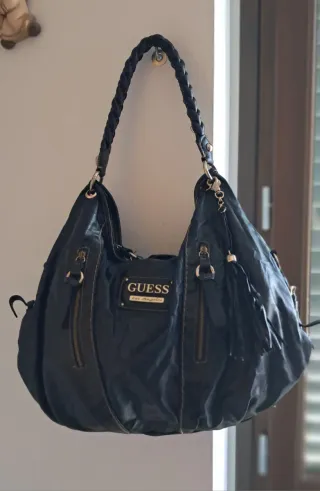 Spaziosa borsa guess vintage Y2K, un accessorio iconico. Usata ma in ottime condizioni. La pelle vegana di ottima qualità è intatta, fodera interna di raso pulita, presenta solo lievi segni d'usura. - Manico intrecciato. - Dettagli con zip. - Charm con nappine.