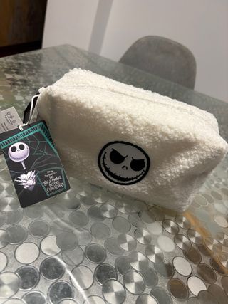 Pochette in morbido tessuto bianco, ispirata a Jack Skellington di Nightmare Before Christmas. - Design con Jack Skellington ricamato. - Materiale soffice al tatto. - Chiusura con zip.