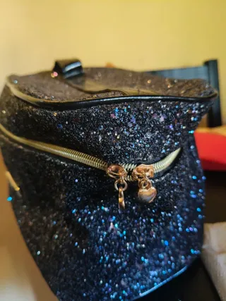 Beauty case con paillettes scintillanti. - Design elegante e moderno. - Dettagli in ecopelle.