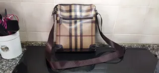 Tracolla con il classico motivo a quadri. - Motivo a quadri iconico. - Dettagli in pelle marrone. - Tracolla regolabile. - misure in foto