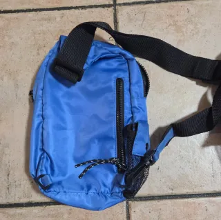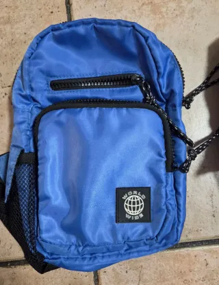 Tracolla blu con logo World Wide e tasca frontale. + un'altra in regalo - Tessuto resistente. - Tasca laterale in rete. - Zip nera.
