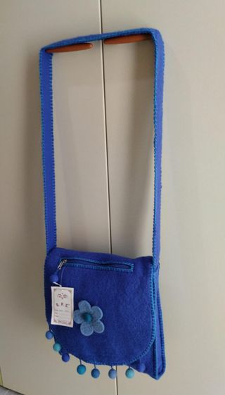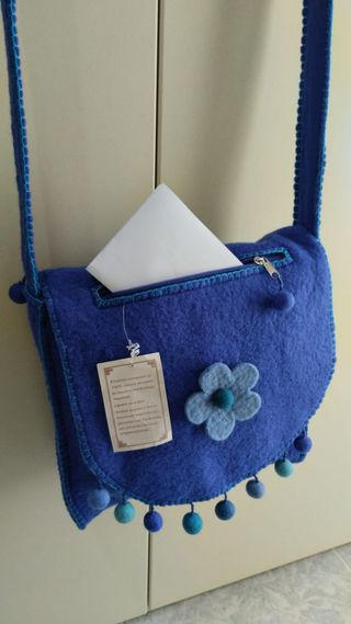 Borsa tracolla lana cotta/feltro azzurra