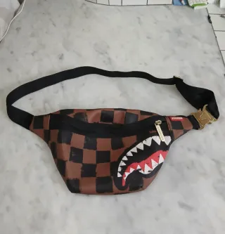 Marsupio Sprayground con un design unico, Limited edition - Fantasia a scacchi marrone e nero. - Dettaglio Shark Mouth sul davanti. - Chiusura con zip. - Fibbia regolabile. Usato pochissimo , come nuovo