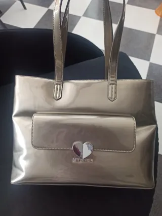 Bellissima borsa Moschino colore argento. Presenta una tasca frontale con chiusura a patta e un dettaglio a forma di cuore. Forma strutturata e compatta , che mantiene la sua forma, anche quando non è piena. Doppio taschino interno Dust bag originale Perfette condizioni, mai usata - Colore: Argento - Dettaglio: Cuore metallico
