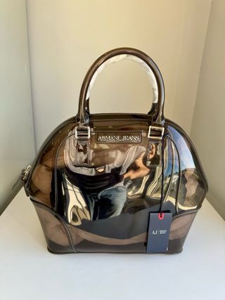 Borsa Armani Jeans con un design unico e particolare. - Materiale plastico trasparente con sfumature marroni. - Effetto lucido che cattura la luce. - Logo Armani Jeans ben visibile.