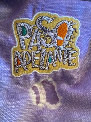 Zaino vintage con una divertente fantasia PASO DELANTE - Design unico e colorato. - Spalline regolabili per un maggiore comfort. DUE PISTI DRNTTO DUE CERNIERE FUORI LA TASCA SOPRA (ultima foto la cerniera è dura ma si può sbloccare) il resto è buono VINTAGE particolare anno 90