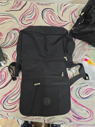 Zaino nero con diverse tasche e scomparti. - Materiale resistente. - Chiusure con cerniera. - Logo rotondo sul davanti.
