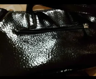 Borsa Carpisa in ecopelle nera, con una texture particolare che riflette la luce. - Chiusura con cerniera. - Dettagli metallici argentati.