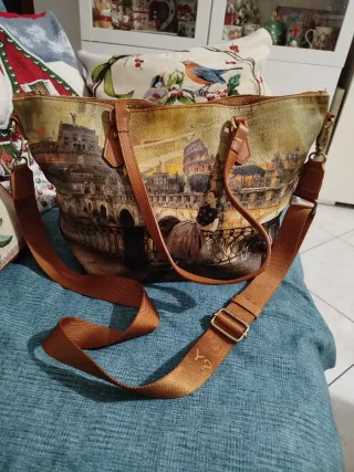 Borsa Ynot? a spalla o tracolla con stampa raffigurante Roma. Usata pochissimo, in perfette condizioni. Dimensioni 40x25x16. - Tracolla regolabile in tessuto. - Chiusura superiore con zip.