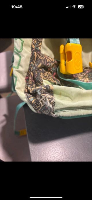 Zaino Invicta originale degli anni '90 con fantasia colorata. - Chiusura con fibbie gialle. - Spallacci regolabili. - Design unico e vivace.