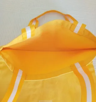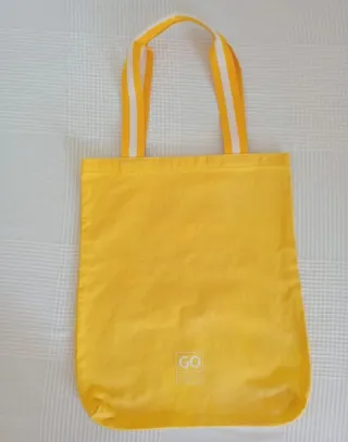 Borsa in tela di colore giallo vivace, perfetta per ogni occasione. Presenta un piccolo logo Carpisa GO stampato sul davanti. Misure in foto - Manici a contrasto bianco e giallo. - Materiale resistente.
