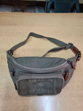 Marsupio The Bridge modello Wayfarer in tessuto. - Colore verde oliva. - Logo The Bridge Wayfarer stampato sul davanti. - Dettagli in pelle. - Chiusura con cerniera.