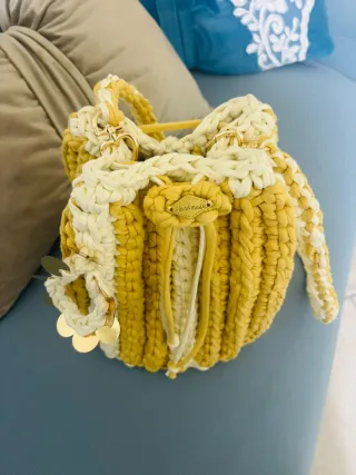 Borsa uncinetto fettuccia gialla e bianca