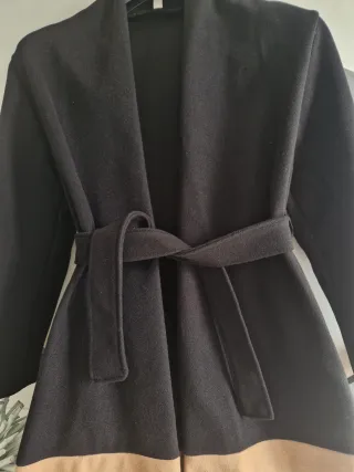 Elegante cappotto corto Italian style , perfetto per completare il tuo look. - Colore principale nero con una banda beige. - Dettaglio di frange sul fondo. - Cintura in vita per una silhouette definita. Taglia M Pantalone Imperial tg L