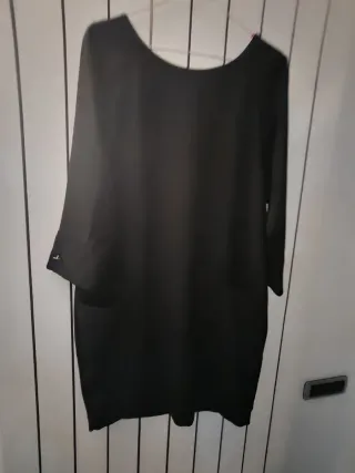 Elegante vestito Rinascimento di colore nero. Un capo versatile e raffinato. - Scollo a barca. - Maniche a tre quarti. - Tasche laterali. - Dettaglio sul polsino.