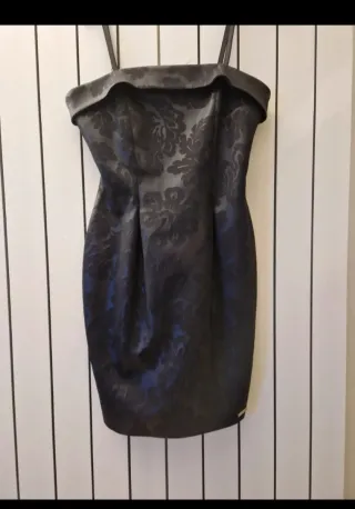Elegante abito corto con fantasia floreale. Un capo versatile per diverse occasioni. - Tessuto con lavorazione jacquard. - Scollo a bardot. - Spalline sottili. - Lunghezza al ginocchio. Nuovo senza cartellino. Capospalla Paolo Casalino, Nero ,tg M