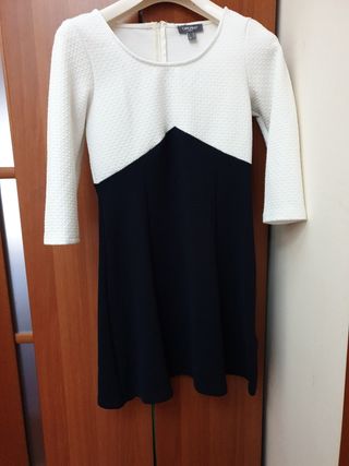 Bellissimo vestito Camomilla, nuovo e di ottima qualità. Design bicolore con parte superiore bianca e gonna nera.Il costo originale è 70 euro. Mai indossato - Tessuto con texture a rilievo. - Maniche lunghe. - Zip posteriore.