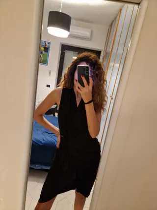 Vestito corto con sandali neri