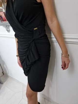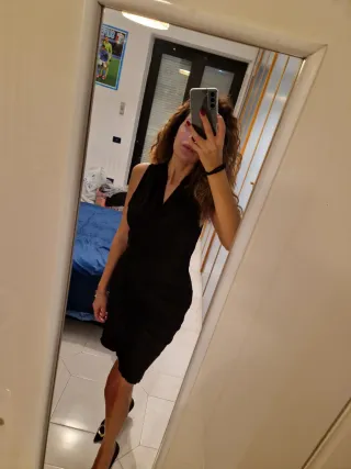 Elegante tubino con drappeggio sul davanti. Tg 42. - Scollo a V. - Maniche corte. - Tessuto morbido. Mai indossato Scarpe Fersini, n.40. Tacco 11. Ottimo stato