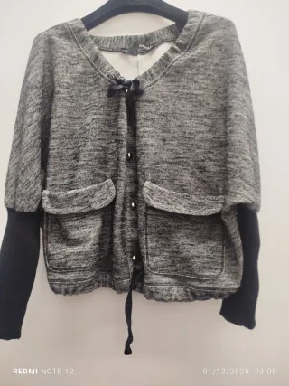 Giacchina Annarita N con un design moderno e dettagli curati. Tessuto tipo felpa. In ottime condizioni. - Chiusura con bottoni. - Tasche frontali. - Coulisse sul fondo. - laccio di chiusura sul collo.