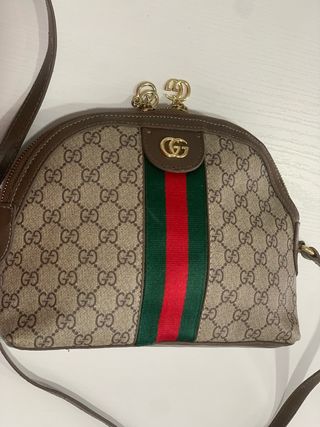 Splendida borsa bellocon il classico motivo GG. - Motivo GG all-over. - Striscia verde e rossa. - Dettagli dorati. - Tracolla regolabile.