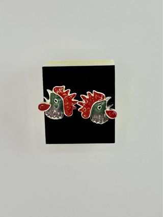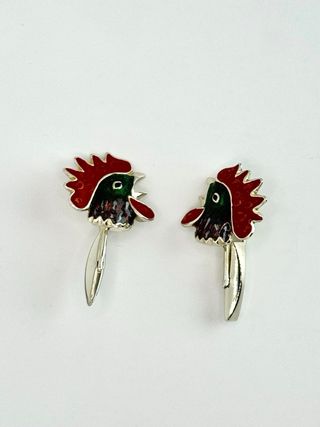 Gemelli molto particolari realizzati con smalto multicolore (per imitare il colore delle piume del gallo) montato in argento 925. Sono dei gemelli molto particolari e unici, difficilmente ci si trova a questo prezzo qualcosa di così particolare. Un’ottima idea per un uomo che si veste elegante. Le condizioni sono pari a nuovo. Dimensioni: 21 mm x 25 mm