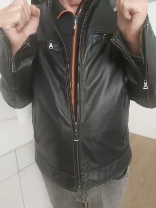 Elegante giubbino in pelle da uomo. - Materiale: Pelle - Chiusura con zip - Tasche frontali con zip Maniche con zip Tasche interne 2