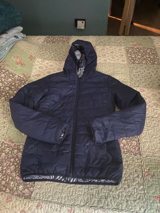 Piumino da donna leggero Champion, reversibile con fantasia interna. Taglia 40 - Chiusura con zip. - Cappuccio. - Tasche laterali. Come nuovo (usato 4 volte)