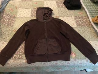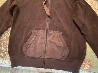 Felpa marrone, apertura a zip Cappuccio Tessuto cotone misto a cotone tipo pelouche Taglia S Marca DEHA