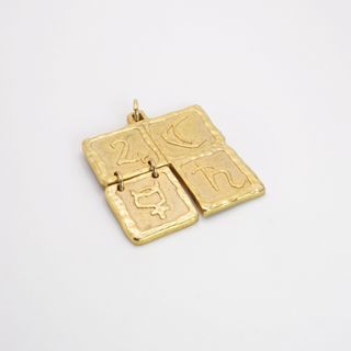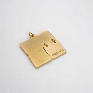 Pendente da collezione color oro firmato Rochas. Ottime le condizioni, piccoli segni di età. Dimensioni: 50 mm x 40 mm Unisex