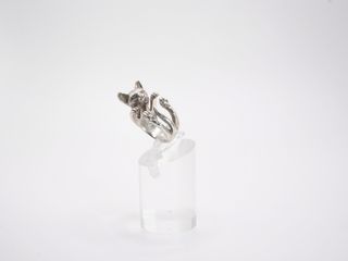 Delizioso anello artigianale a forma di gatto, realizzato in argento 925. - Design unico e dettagliato. - Finitura lucida in argento. - Realizzato in Italia.