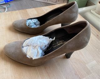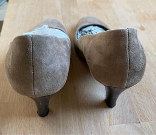 Eleganti décolleté in camoscio, perfette per completare ogni outfit. Taglia 37 - Materiale scamosciato. - Tinta unita color tortora . - Tacco medio (8 cm)
