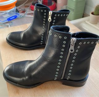 Stivaletti in pelle in ottime condizioni, perfetti per completare ogni outfit. - Design con borchie metalliche. - 2 Zip laterali per una facile calzata. - Punta arrotondata.